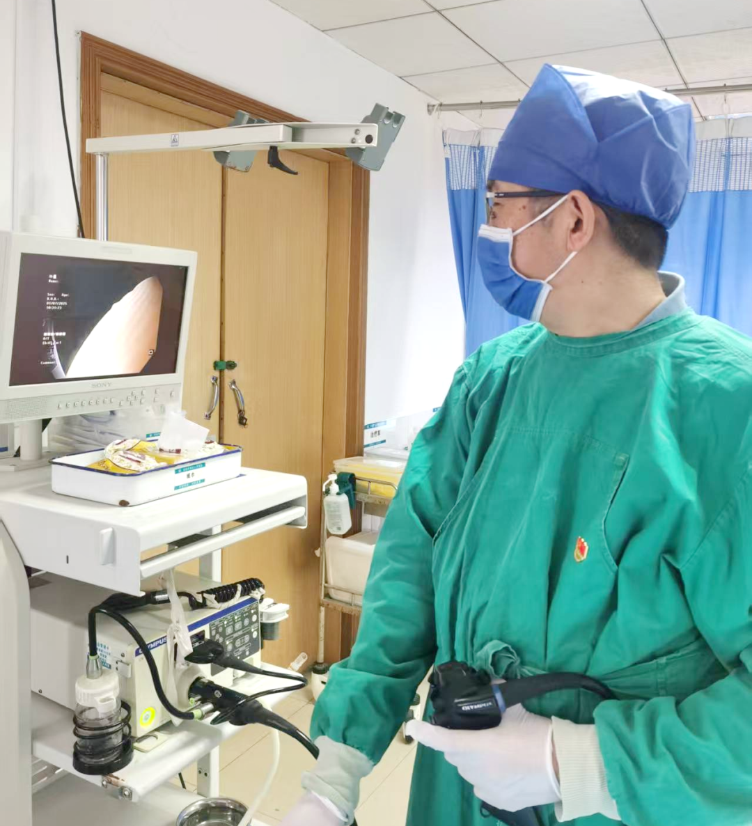 在内科一支部各个病区,佩戴着党徽的医护人员,不仅是一份身份的标识,更是一份沉甸甸的责任宣言。无论多忙多累,他们始终以更饱满的热情、更耐心的沟通、更严谨的态度面对每一位患者。在北区胃肠镜室,冯忠平同志悉心为患者做胃镜,患者张大伯看到感慨道:“看到医生护士胸前闪亮的党徽,我这心里就特别踏实,感觉找到了主心骨!”这抹“党徽红”,已成为患者最直观的信任来源。