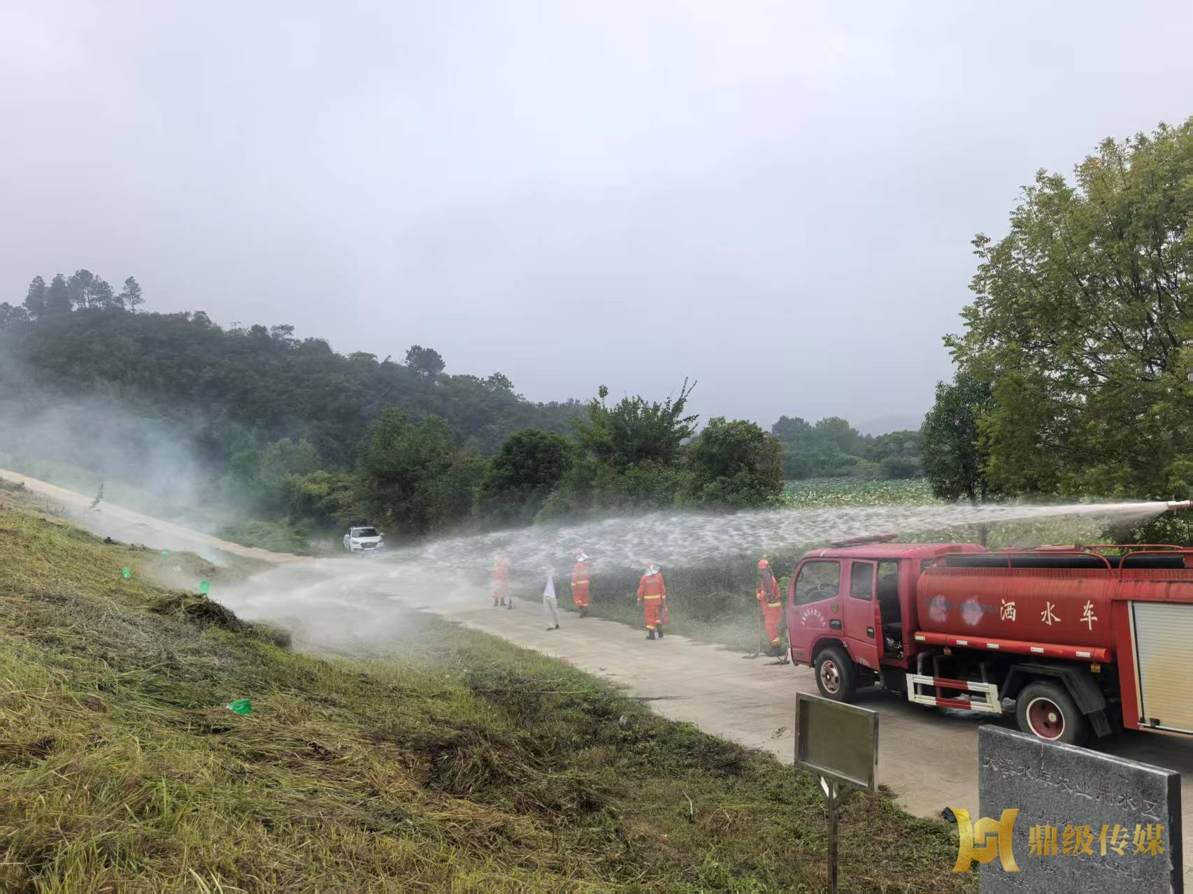 演练模拟村民违规焚烧杂草引发零星火情,护林员巡护发现后立即通过应急联络群上报位置与火势。镇林业站15分钟内调度队伍携带灭火瓶、防火拖把及消防车赶赴现场。警戒组在火场周边设安全区,扑打组快速压制明火,清理组清理余烟、降温,全程仅30分钟高效完成“火情”处置。