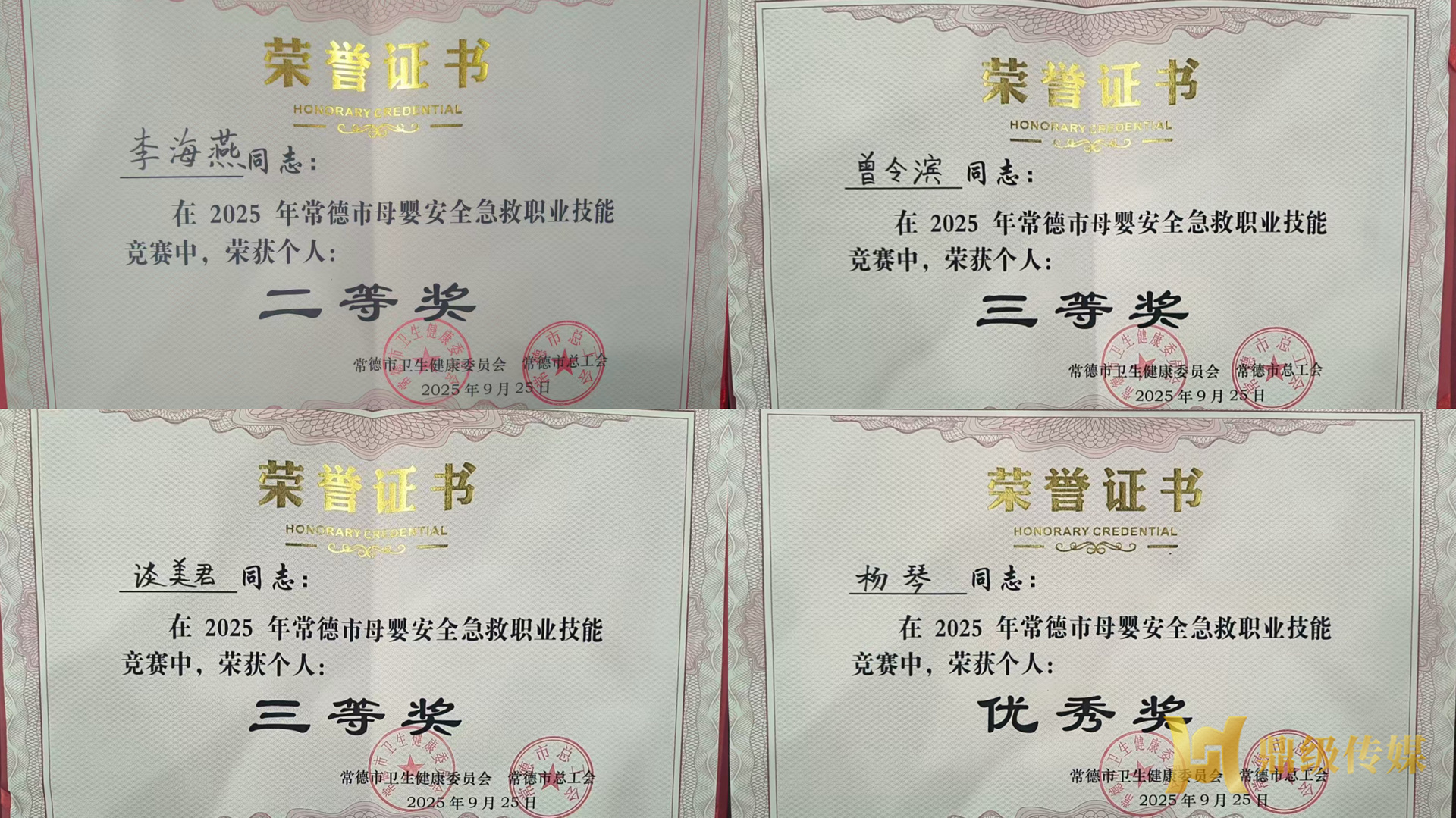 鼎级传媒客户端9月26日讯(通讯员 邓旭汝)金秋时节,捷报频传。在2025年常德市母婴安全急救职业技能竞赛中,由鼎城区妇幼保健院4名医师与常德市第四人民医院2名医师联合组建的鼎城区代表队,凭借扎实的理论功底、精湛的实操技能与高效的临场应变能力,荣获团体三等奖的好成绩。
