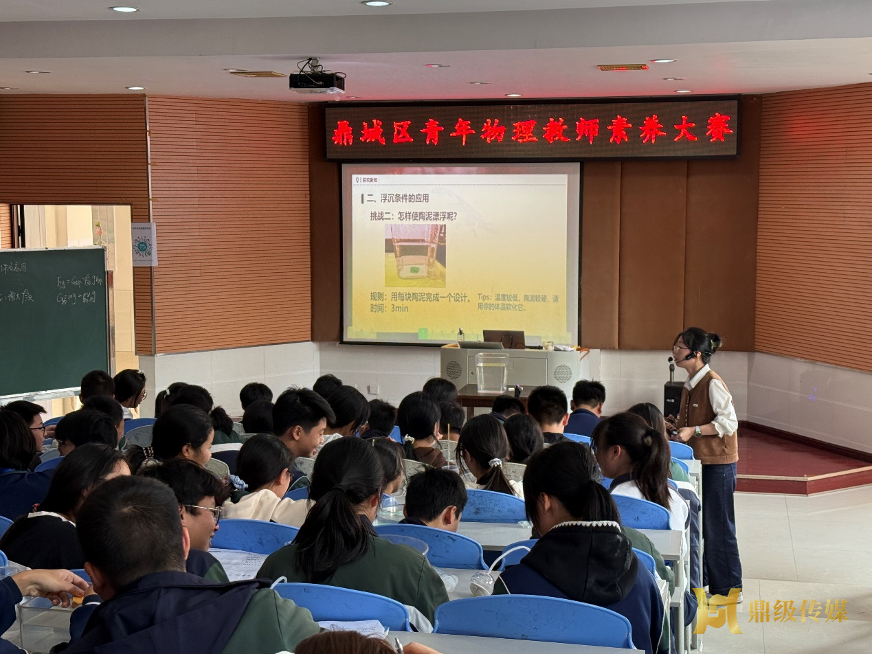 日前,2025年鼎城区青年物理教师素养大赛决赛在善卷中学圆满举行。本次赛事由鼎城区教研室与鼎城区李向勇物理名师工作室共同主办,聚焦人教版八年级下册第十章第三节《物体的浮沉条件及应用》一课,以“同课异构”形式展开教学竞技。