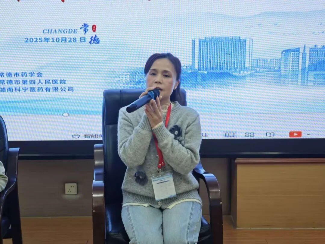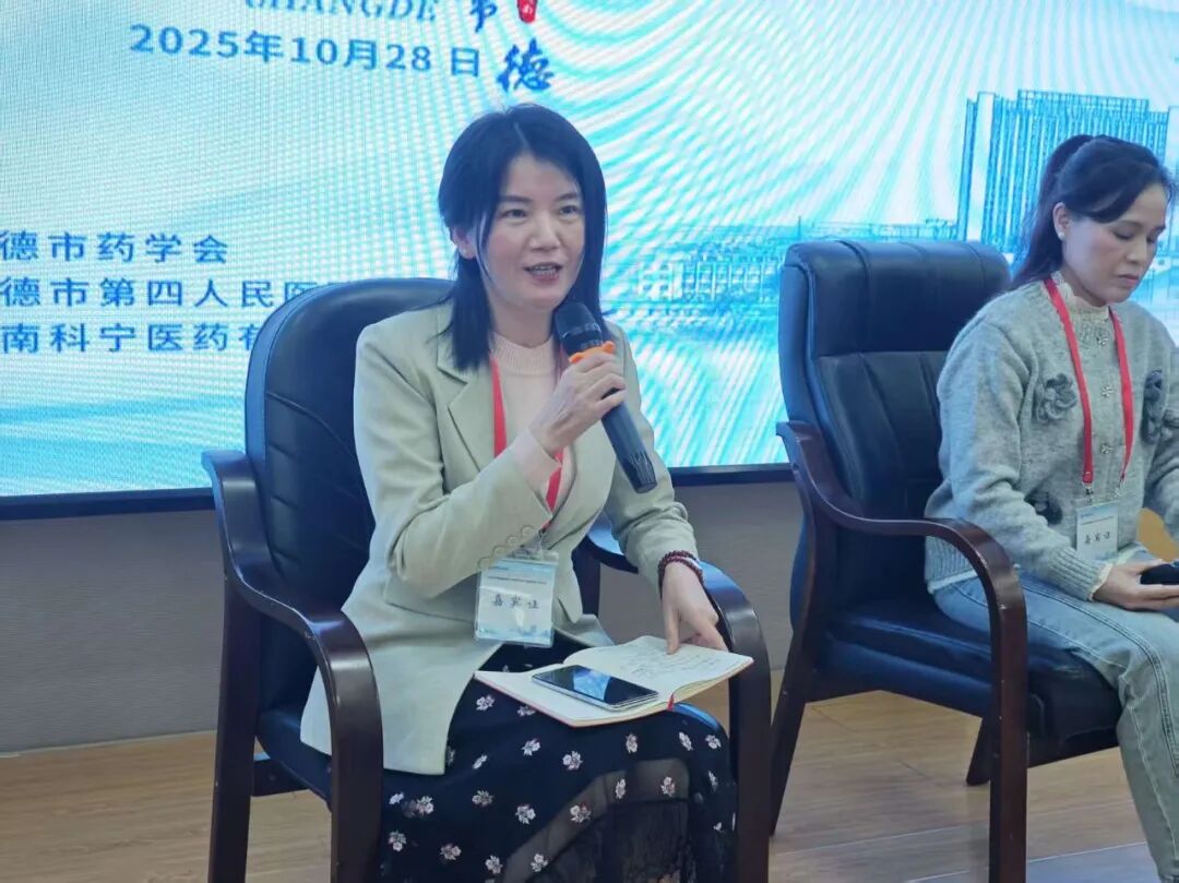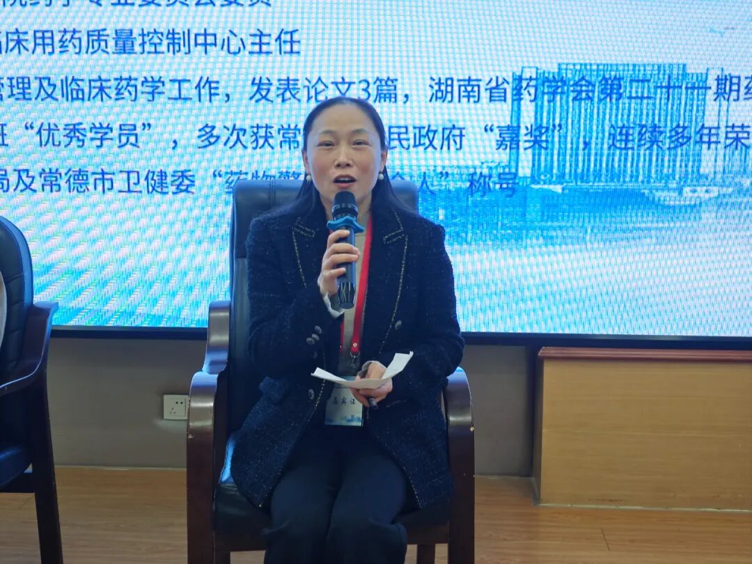 每场讲座后均设置了专题讨论环节,来自常德市第一人民医院的李沁璇教授、湘雅常德医院的郭艳教授、常德市第三人民医院的叶明霞教授、安乡县人民医院的严红亮教授、常德市第二人民医院的沈曦凤教授、常德市第四人民医院的罗璇教授等围绕讲题展开了热烈而深入的交流。智慧的火花不断迸发,大家共同探讨药学服务转型中的难点与突破路径,现场气氛十分活跃。