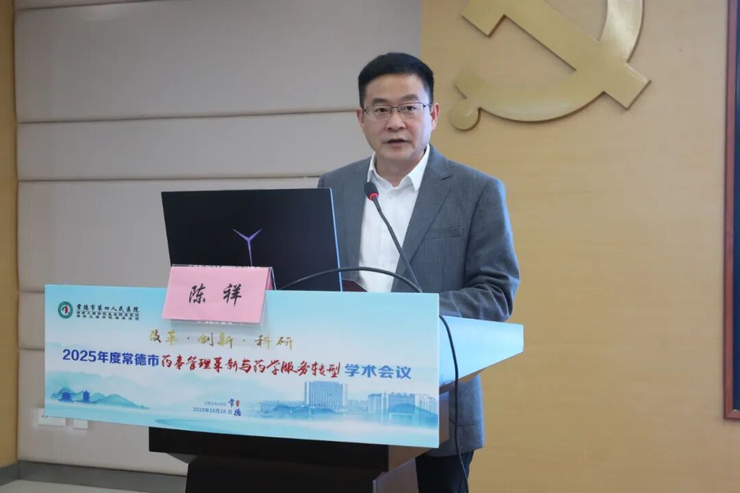 会议伊始,常德市第四人民医院党委书记陈祥发表了热情洋溢的欢迎辞。他指出,药师能力构建、药学服务转型与科研能力提升是当前药学学科发展的重点与难点。本次会议旨在推动药事管理革新与药学服务转型,助力区域药学事业高质量发展。常德市第四人民医院将以此次会议为契机,持续优化学科建设与服务模式,为合理用药与患者安全贡献力量。