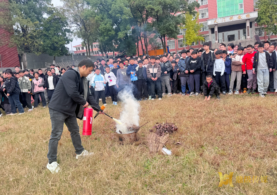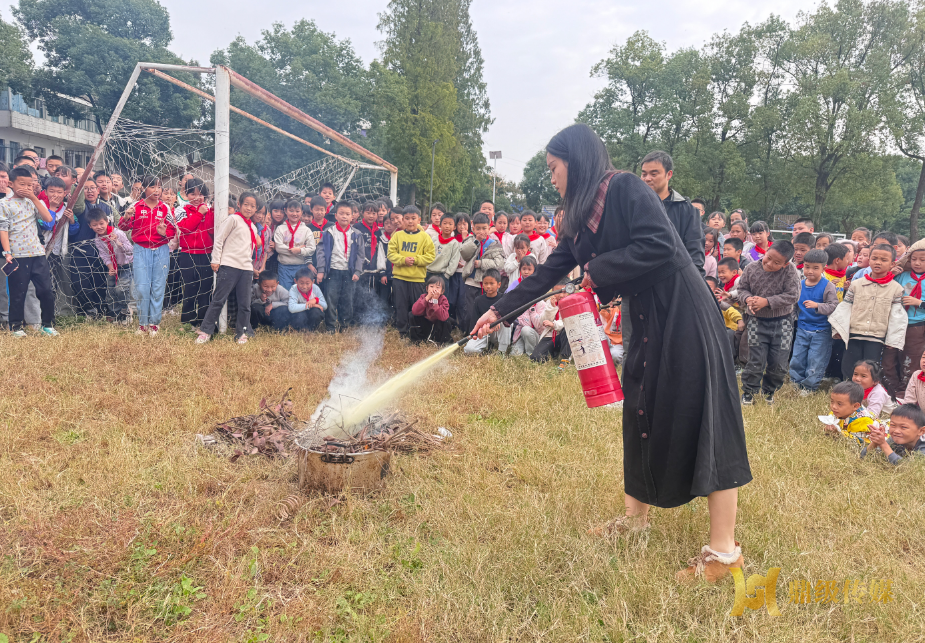 演练前,镇应急办工作人员与学校负责人多次沟通,结合校园建筑布局、学生年龄特点制定了详细的演练方案,明确各环节责任分工。应急办工作人员通过实物讲解的方式,详细介绍了火灾的成因、初期火灾扑救方法、不同场景下的逃生技巧,以及灭火器、消防栓等消防器材的构造与使用步骤。“使用灭火器时,要记住‘提、拔、握、压’四字口诀,提住灭火器手柄,拔掉保险销,握住喷管对准火焰根部,用力按压手柄即可灭火。”消防员一边讲解,一边现场演示灭火器操作,还邀请师生代表上台实操,手把手指导动作要领,让大家在亲身体验中掌握消防技能。