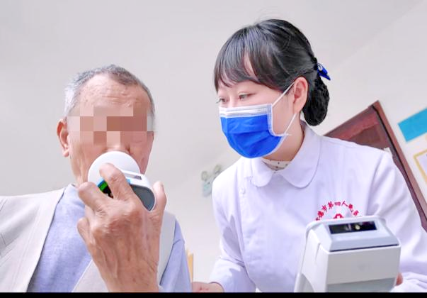通过细致的呼吸肌评估,为贺爷爷量身定制了呼吸康复训练计划,涵盖呼吸肌训练、气道廓清技术、吸入给药训练以及肢体训练。刚开始进行呼吸肌训练时,贺爷爷明显力不从心。迅速调整了呼吸肌训练的肌力指数,呼吸康复师也始终耐心地指导他正确的吸气与呼气方法,不断地给予鼓励。