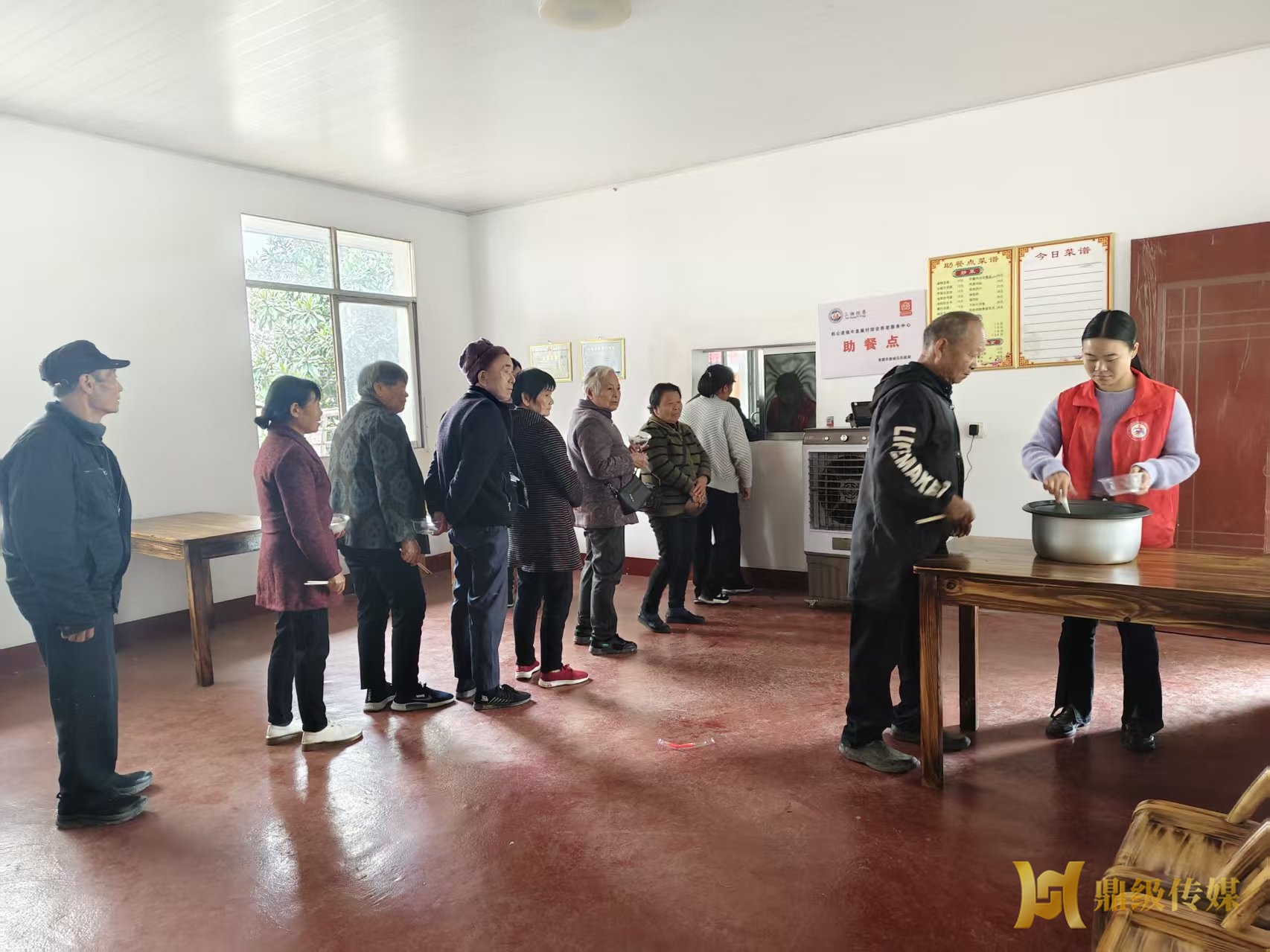 鼎级传媒客户端11月19日讯(通讯员:焦必娟)“开饭咯!今天有红烧肉、清炒时蔬,还有暖胃的冬瓜汤!”11月18日中午12点,伴随着志愿者热情的招呼,韩公渡镇牛皇庵村老年人助餐点正式开餐,20余名留守、独居老人排队打好饭菜后围坐在一起,捧着热气腾腾的饭菜,脸上满是幸福的笑容。