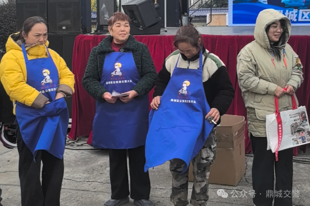 除了民警宣讲,活动的另一大亮点在于让安全知识“可学、可奖、可带回家”。在趣味有奖问答环节,答对问题的群众获得的不是普通礼品,而是印有醒目安全口号的实用物品:印着大队LOGO的安全头盔、写着“戴头盔 保安全”的围裙、以及倡导“树立文明交通意识 抵制交通违法行为”的环保手提袋。这些奖品被群众高兴地带回家,在日常使用中持续发挥“移动宣传站”的作用,实现了“一人受教、全家受益、长久提醒”的二次传播和长效渗透。“这围裙好,我天天做饭都穿着,一家老小都能看见上面的字,比啥宣传都管用!”一位赢得了奖品的阿姨竖起大拇指,赞不绝口。