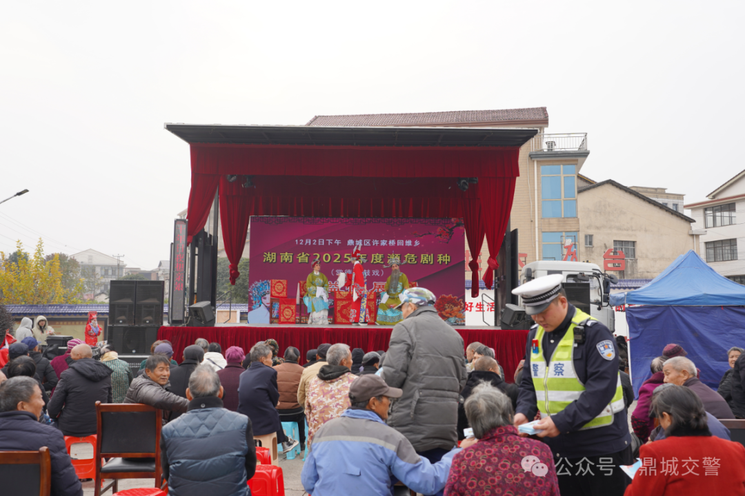 如何破解农村地区,尤其是老年群体交通安全宣传“组织难、入心难”的困局?鼎城交警此次转变思路,变“我搭台请你来”为“我到你台上来”,主动将宣传阵地前置嵌入社区文化站的常态化惠民活动。借助文化平台天然的人气与亲和力,安全宣传不再是生硬插入的“广告”,而是变成了整场文化服务中有机、有趣的环节。