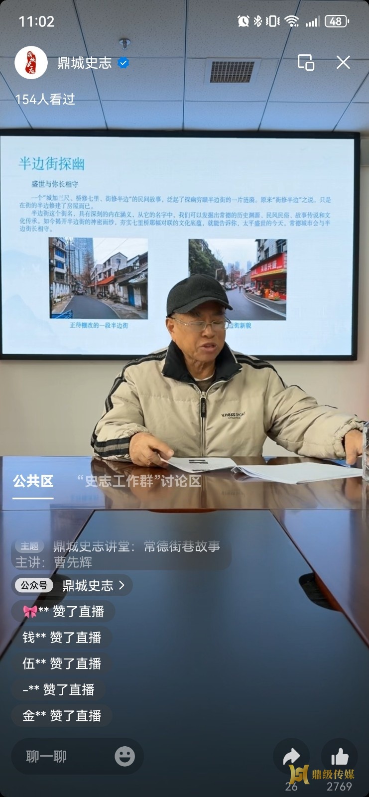 据悉,今年以来,区委党史研究室(区地方志编纂室)创新打造“史志讲堂(地方文化公开课)”品牌,围绕历史名人、抗战史等主题已办3期,累计吸引线上观众800余人。下一步,鼎城区将持续用活史志资源,推出更多贴近群众、契合热点的本土课堂,为赓续城市文脉、提升鼎城文化软实力贡献史志力量。