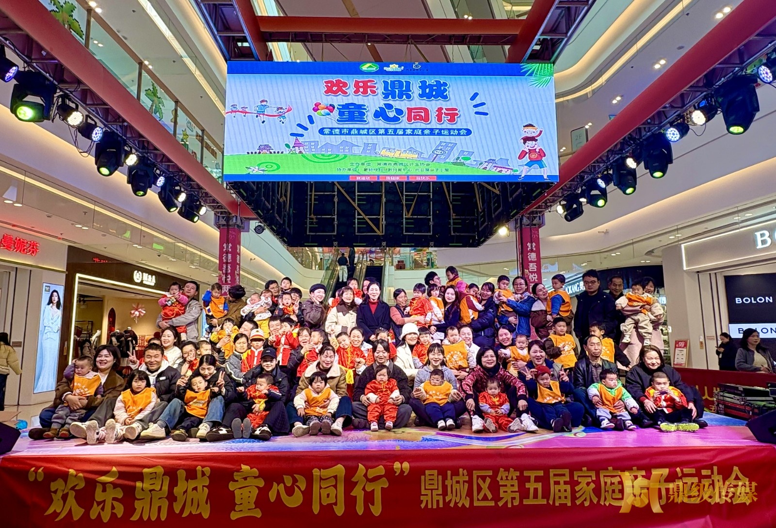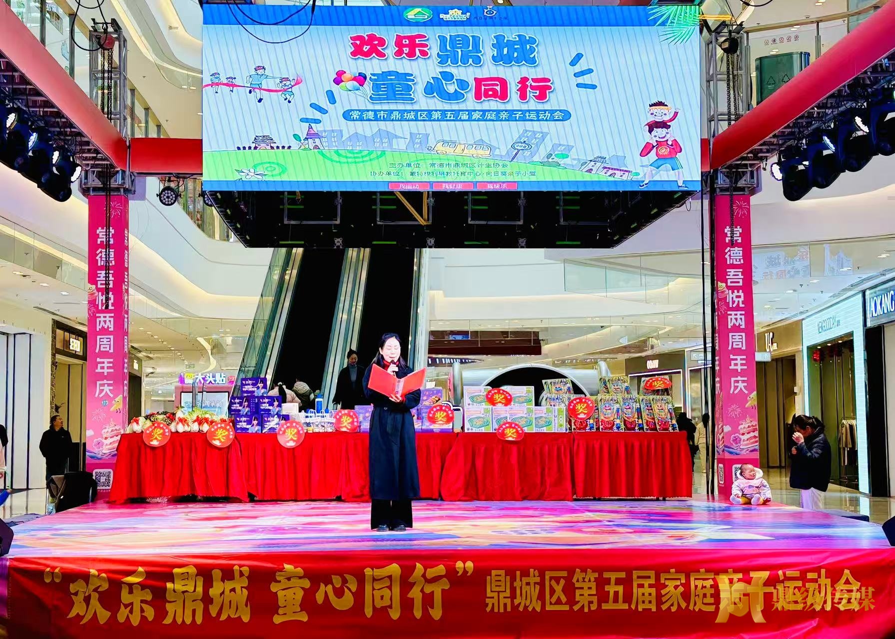 1月10日上午,常德市鼎城区吾悦广场暖意融融、笑语喧扬,由区计划生育协会主办、蒙特梭利早教托育中心·向日葵亲子小屋协办的“欢乐鼎城 童心同行”第五届家庭亲子运动会圆满启幕。作为落实优化生育政策、深化家庭健康促进行动的重要实践,活动以“我运动、我健康、我快乐”为主题,吸引全区百余组家庭踊跃参与,用亲子协作绘就生育友好的温暖图景。