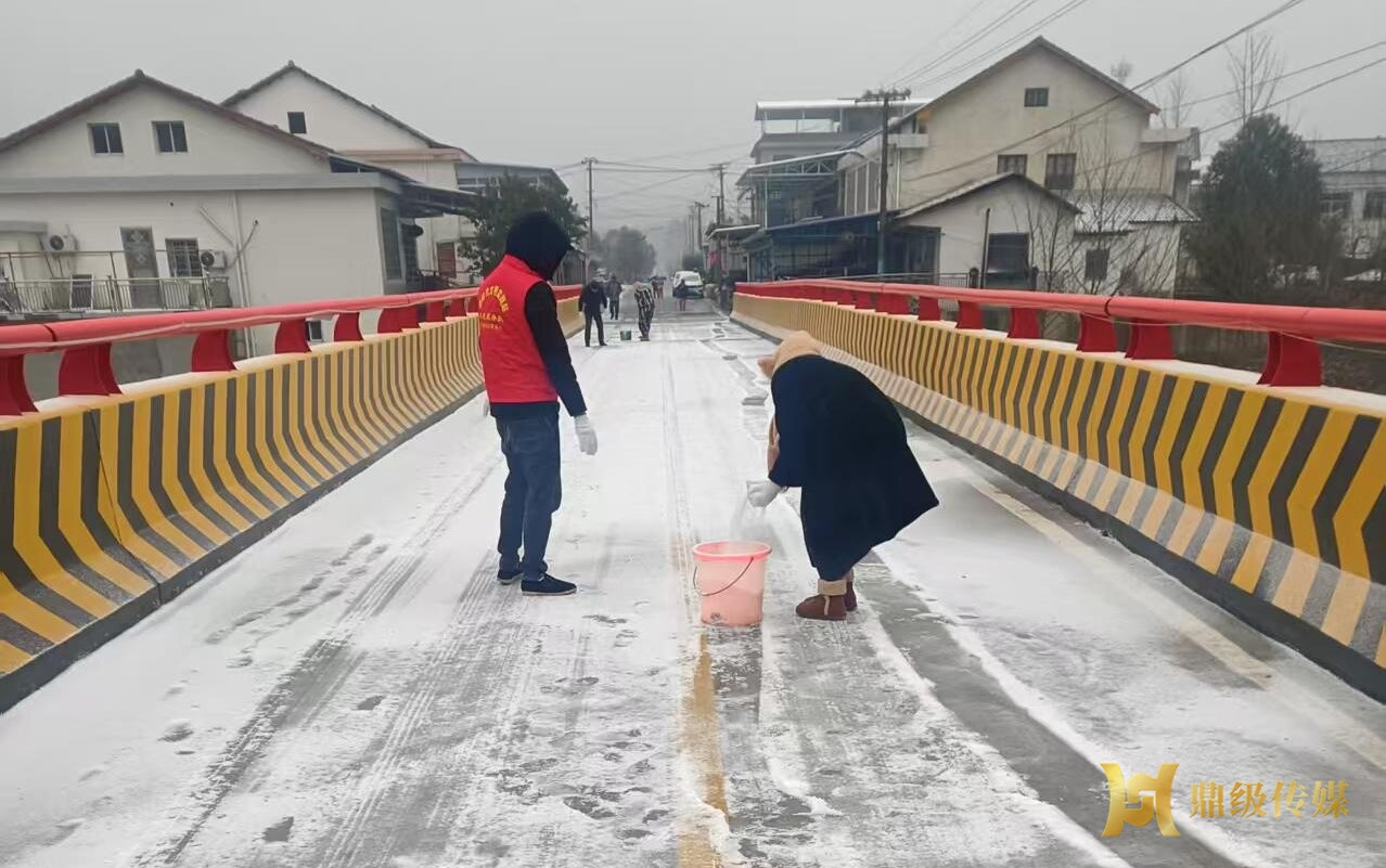 低温雨雪冰冻天气来袭,谢家铺镇多措并举积极应对。受低温天气影响,谢家铺镇部分桥面结冰,给村民出行带来安全隐患。赵家庵村和施家陂村“两委”闻雪而动,迅速组织村干部组成应急小队赶赴现场。大家顶着寒风,手持工具均匀撒布融雪盐,重点清理桥面陡坡、弯道等关键区域。经过数小时奋战,桥面冰层顺利融化,道路恢复畅通,用实干为村民筑牢了冬日出行“安全防线”。