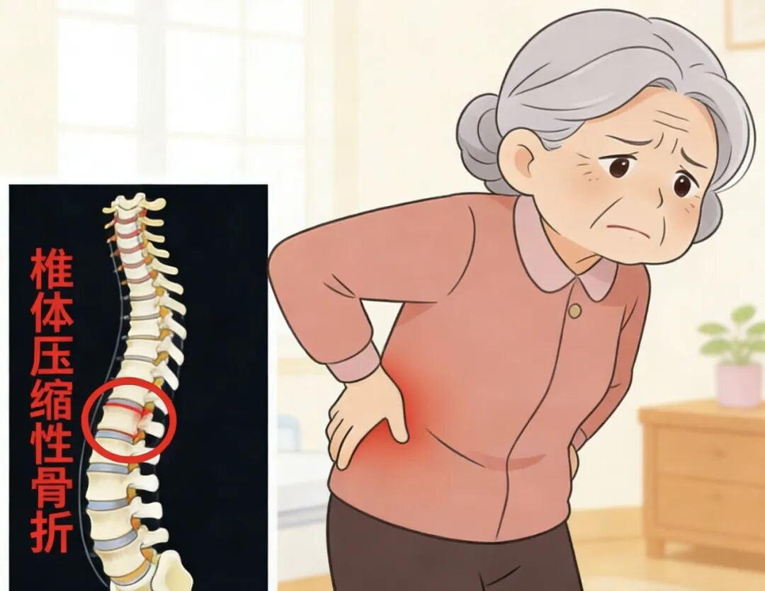 然而,严重骨质疏松的椎体,却像一块被蛀空、毫无支撑力的威化饼。哪怕是轻微的咳嗽、弯腰,都可能让它瞬间塌陷、骨折。这种骨折被称为“椎体压缩性骨折”,它会引发一系列严重问题: