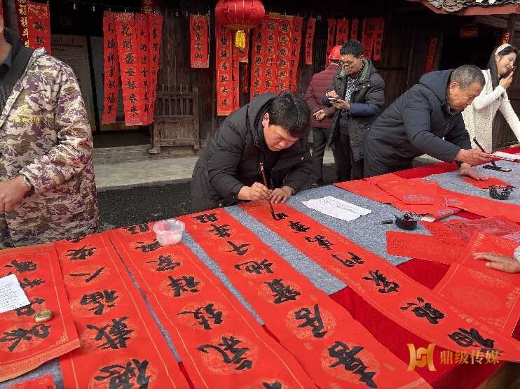 在古法馨香源前的广场,常德市书法协会的书法家们正挥毫泼墨,为村民们免费书写春联。“春回大地风光好,福满人间喜事多”“门迎百福福星照,户纳千祥祥云开”......一副副寓意吉祥的春联在笔尖流淌,红纸黑字间洋溢着浓浓的年味和文化气息。