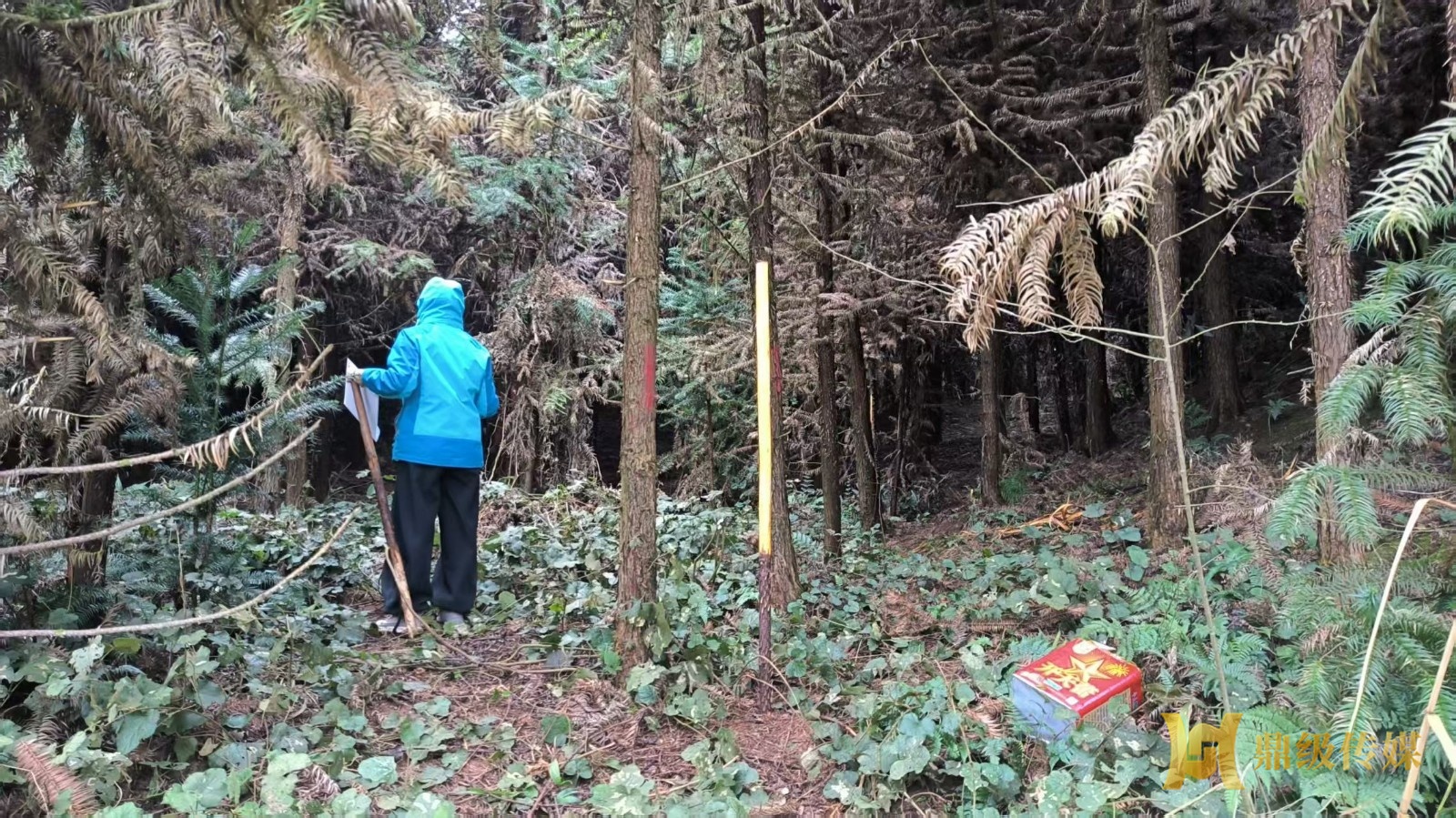 技术人员通过踏查整个小班后,选择有代表性的典型地段布设标准地,对标准地内的林木进行每木检尺、标注和分类分级,按照砍小留大、去劣留优、间密留稀、伐针保阔的原则,设定采伐木和保留木,完善样地调查表和小班调查表。