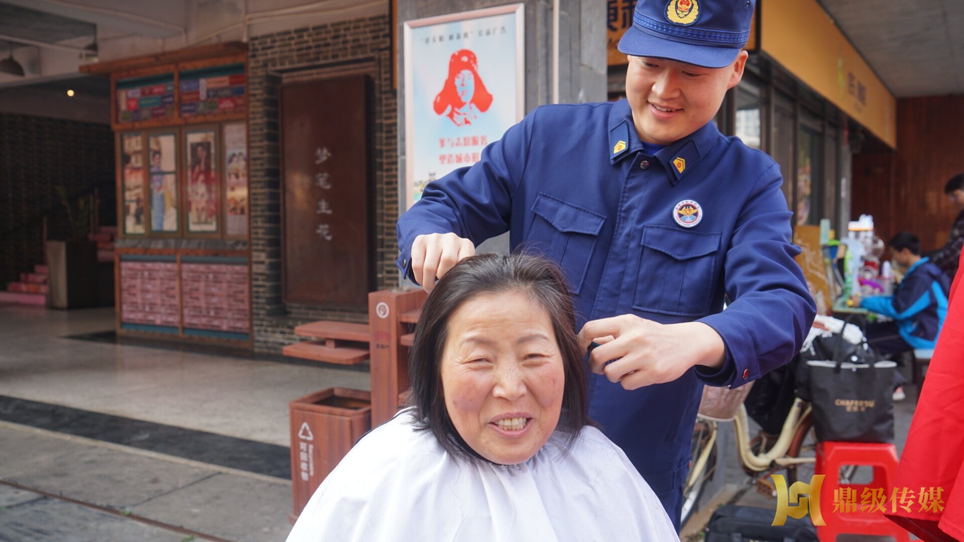 活动当天,广场上人头攒动,宣传员员身着“火焰蓝”制服,成为一道亮丽的风景线。在广场的一角,一个临时搭建的“爱心理发点”格外引人注目。几张椅子、几套理发工具,一个简易却充满温情的“理发店”便开始“营业”了。宣传员员虽然不是专业理发师,但他们手法娴熟、态度温和,耐心细致地询问每一位老人的需求,精心为他们修剪出满意的发型。伴随着剪刀的“咔嚓”声和推子的“嗡嗡”声,老人们原本略显凌乱的头发变得整齐利落,精神面貌也焕然一新。