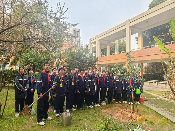 中午,校团委通过广播发出植树节倡议书,讲述校园内三株即将“搬家”的小树苗的成长故事,号召师生为小树培土浇水,更将绿色理念延伸到校外——在阳台播种、在庭院栽绿、与家人共植“成长树”、为社区捡拾垃圾,用每一个微小行动履行与春天的约定。下午4时,“绿色约定”迎来温暖兑现。备受关注的三株小树苗,在团学践行社同学和老师的细心呵护下开启“迁徙”之旅。