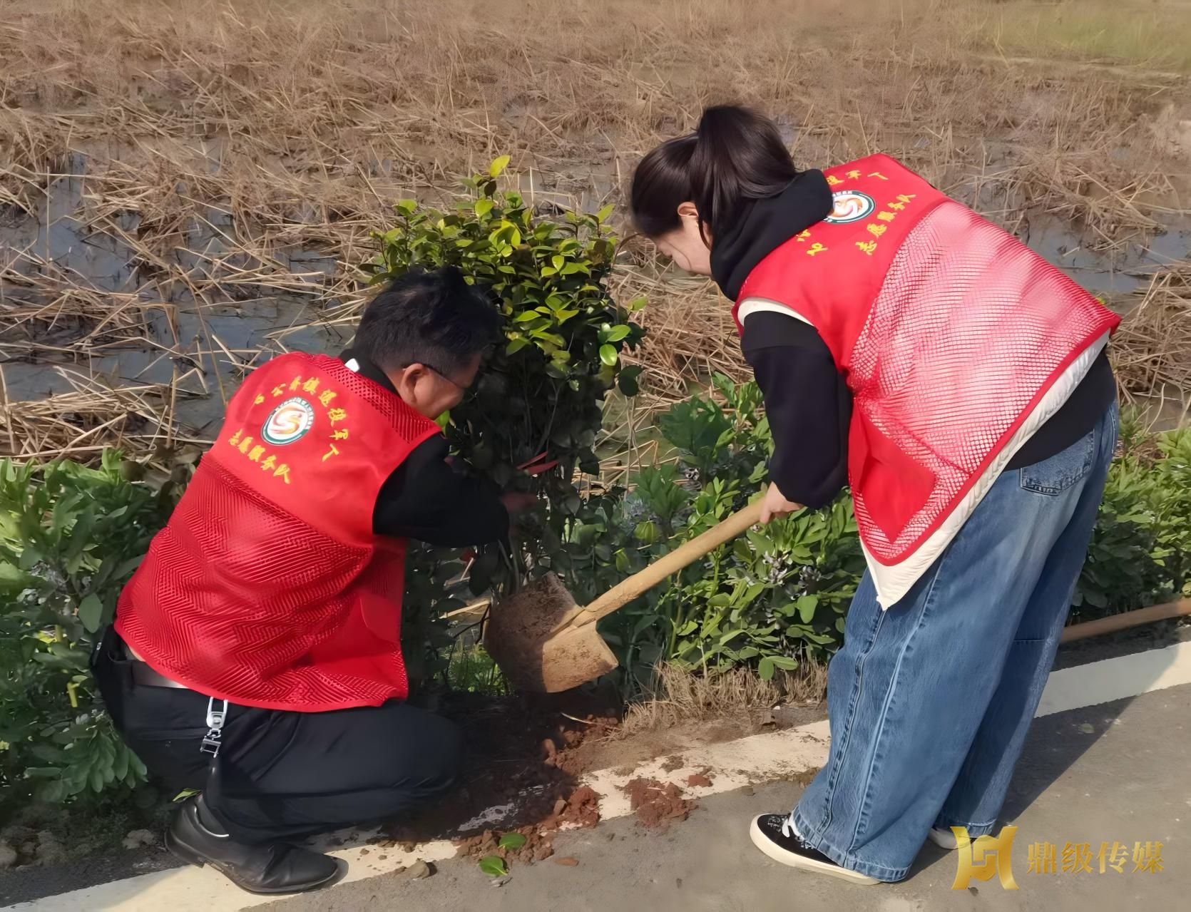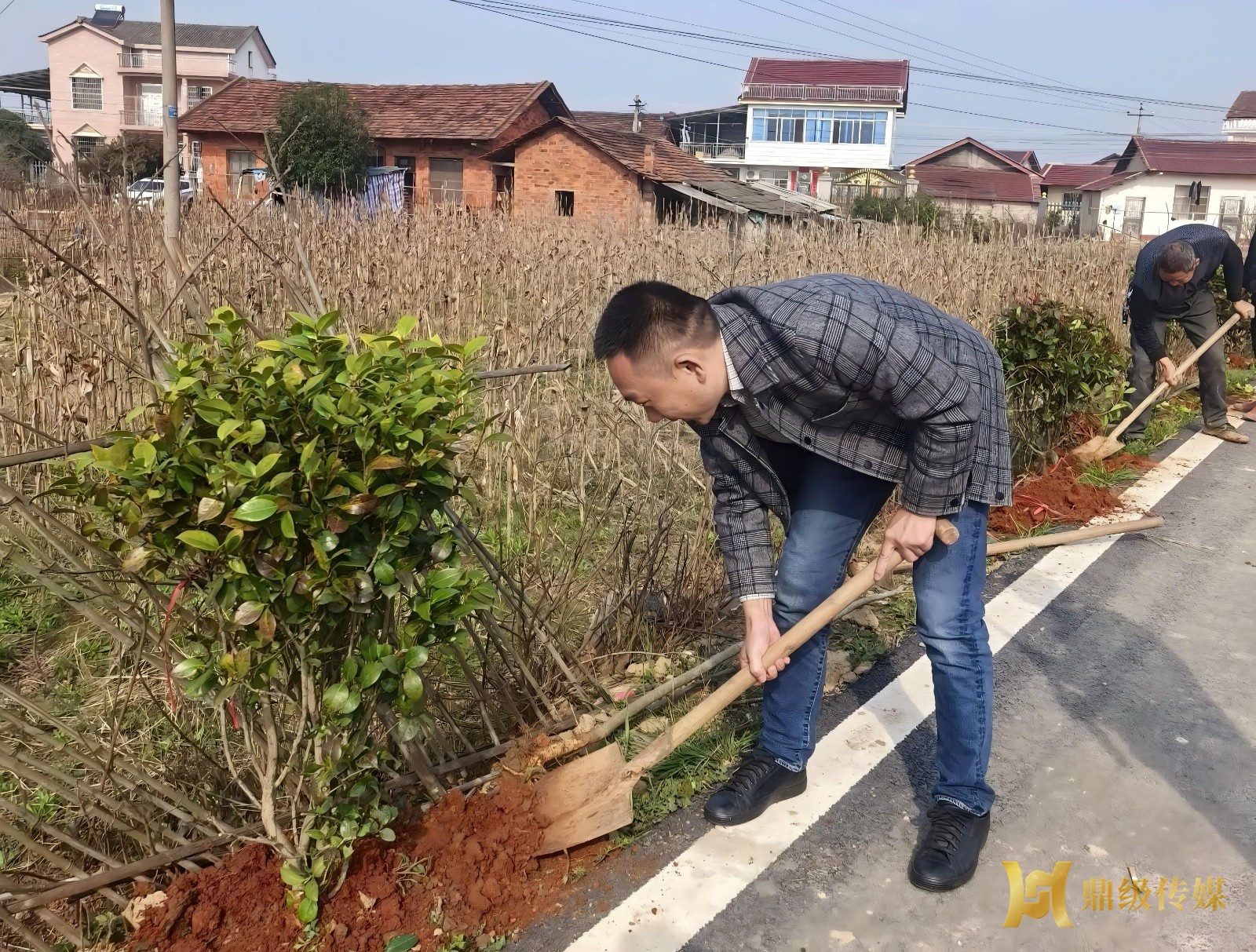 植树现场,大家几人一组,分工协作,有的挥锹铲土、有的扶苗填坑、有的踩实浇水,每一道工序都做得一丝不苟,现场呈现出一派热火朝天的劳动景象。农技人员还现场当起了“指导员”,对树坑挖掘、树苗栽植深度、浇水要点等进行技术指导,确保“栽一棵、活一棵,植一片、成一片”。