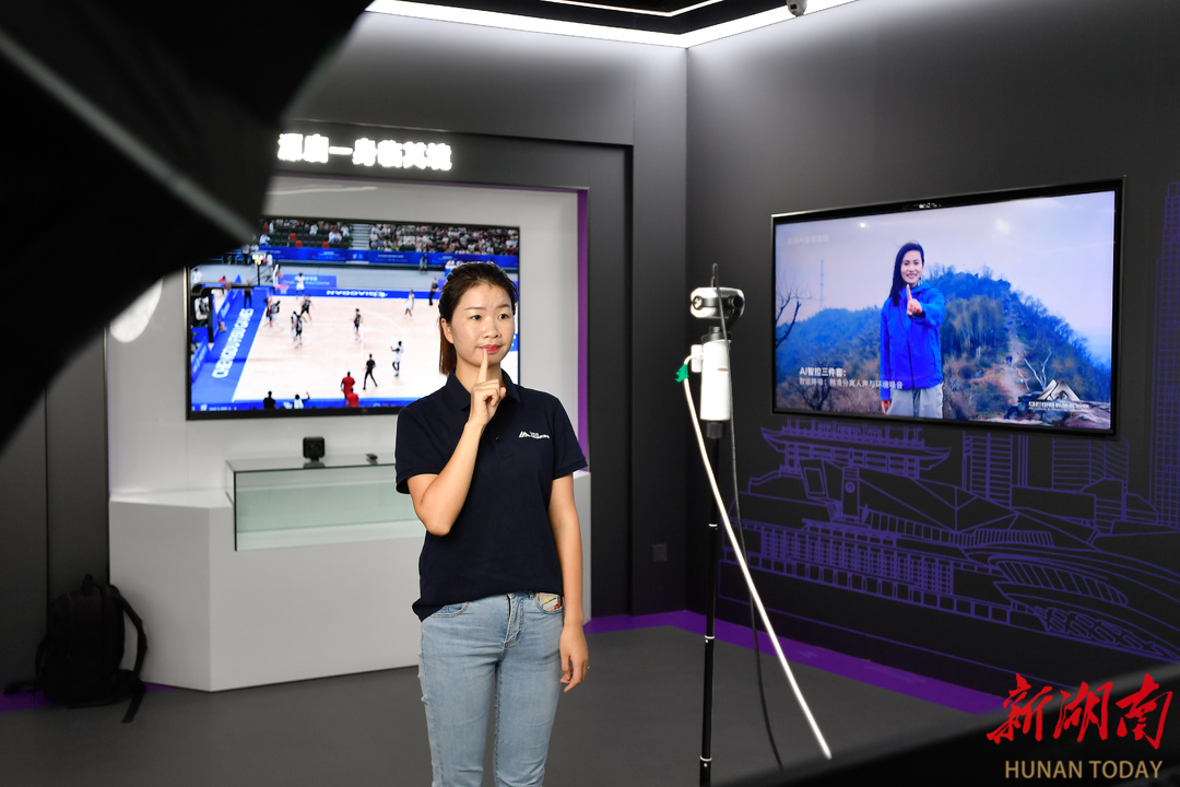 马栏山视频文创产业园,马栏山音视频实验室工作人员通过手势识别,测试双目AI直播相机。湖南日报全媒体记者 辜鹏博 摄