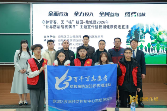 鼎级传媒客户端3月24日讯(通讯员 张蕾)在第31个世界防治结核病日来临之际,3月23日晚,由区卫健局、区教育局主办,区疾病预防控制中心联合常德市第四人民医院、湖南应用技术学院共同承办的“守护青春,无‘核’校园”主题宣传直播活动举行。