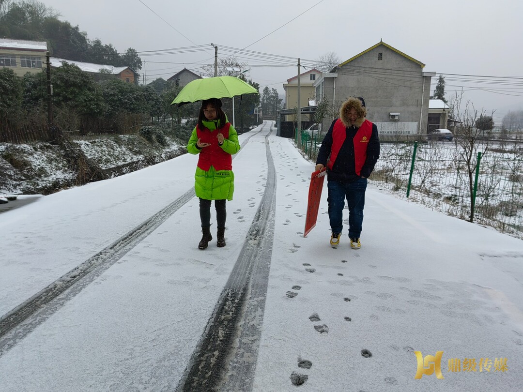 执勤人员在各危险路段仔细排查,设立警示标识,在不能通行的路段提前设置好路障,并安排专人24小时值守,对来往车辆提前进行告知。同时,各村社利用宣传车、村村响广播滚动播放路面结冰情况、道路通行情况以及安全用火用电知识,全镇98个网格群也不断推送相关信息,让群众及时掌握各路段通行情况,安排好自己的出行计划。